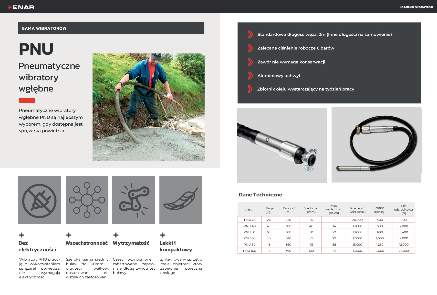 Karta katalogowa pnrumatycznych buław do betonu Enar PNU
