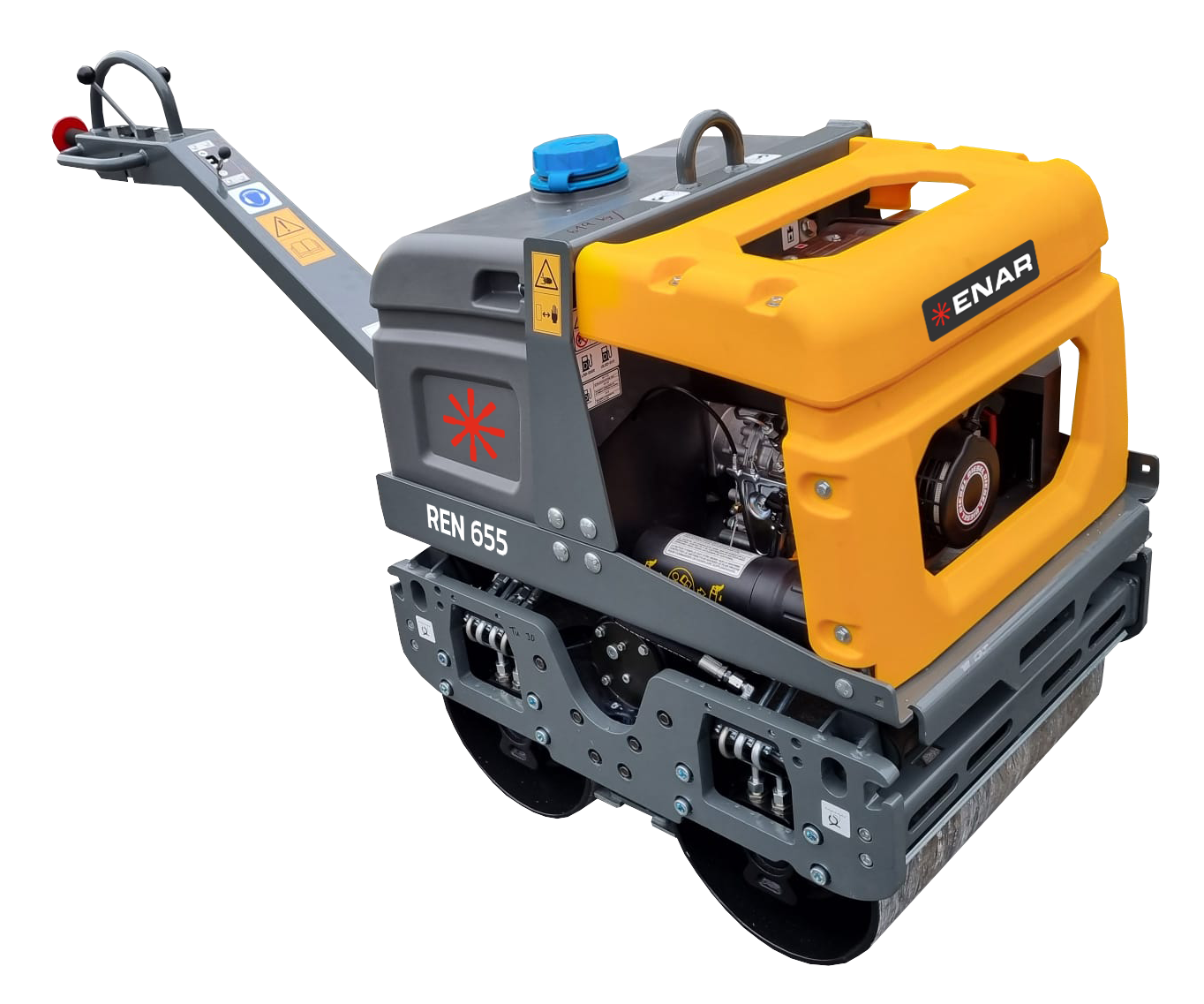 Walec REN 655 DY z podwójnym wibratorem prowadzonym ręcznie zapewnia doskonałą wydajność zarówno w zagęszczaniu gruntu, jak i asfaltu – dzięki optymalnie zintegrowanej częstotliwości i dwóm stopniom wibracji. W pełni hydrauliczny system ruchu i wibracji, wymagający mniejszej konserwacji i mniejszego zapotrzebowania na części zamienne.