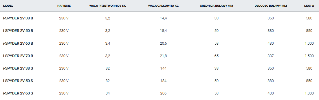 4) Buławy średnicy 38, 50, 58 i 65mm. Tuby wykonane ze stali hartowanej o podwyższonej odporności na ścieranie, z umieszczonym wewnątrz przewymiarowanym silnikiem oraz mimośrodem wibracyjnym