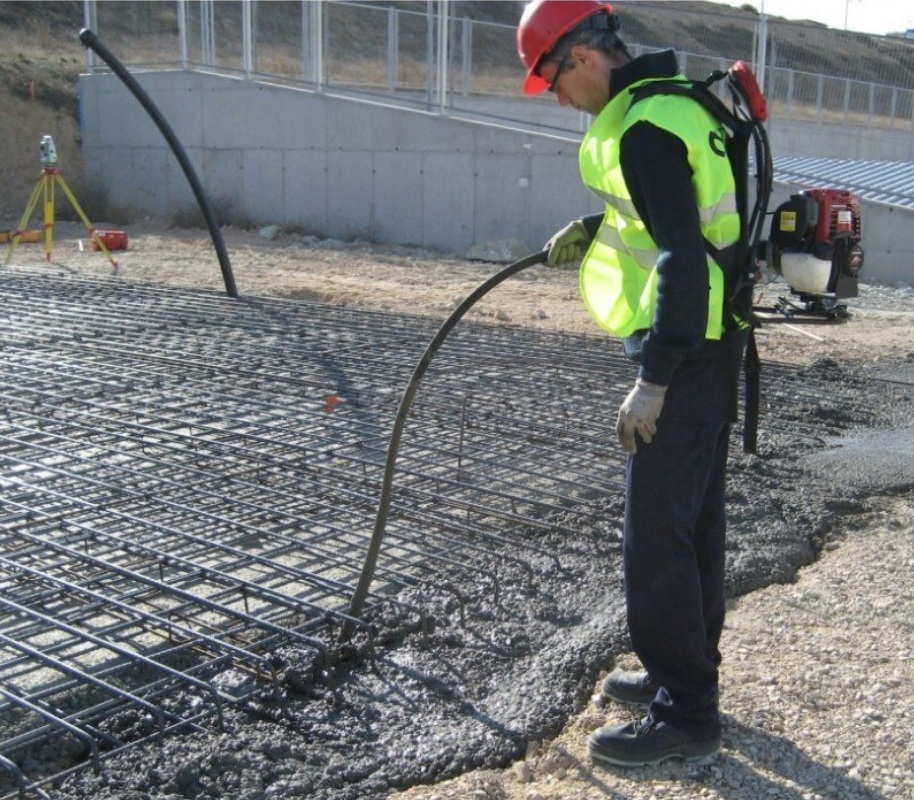 Wibrator spalinowy zapewnia pełną swobodę działania, nie ograniczoną przyłączem do prądu. Wibrator umieszczony w plecaku ze stelażem i wyposażony w podtrzymującą napęd obrotową głowicę.