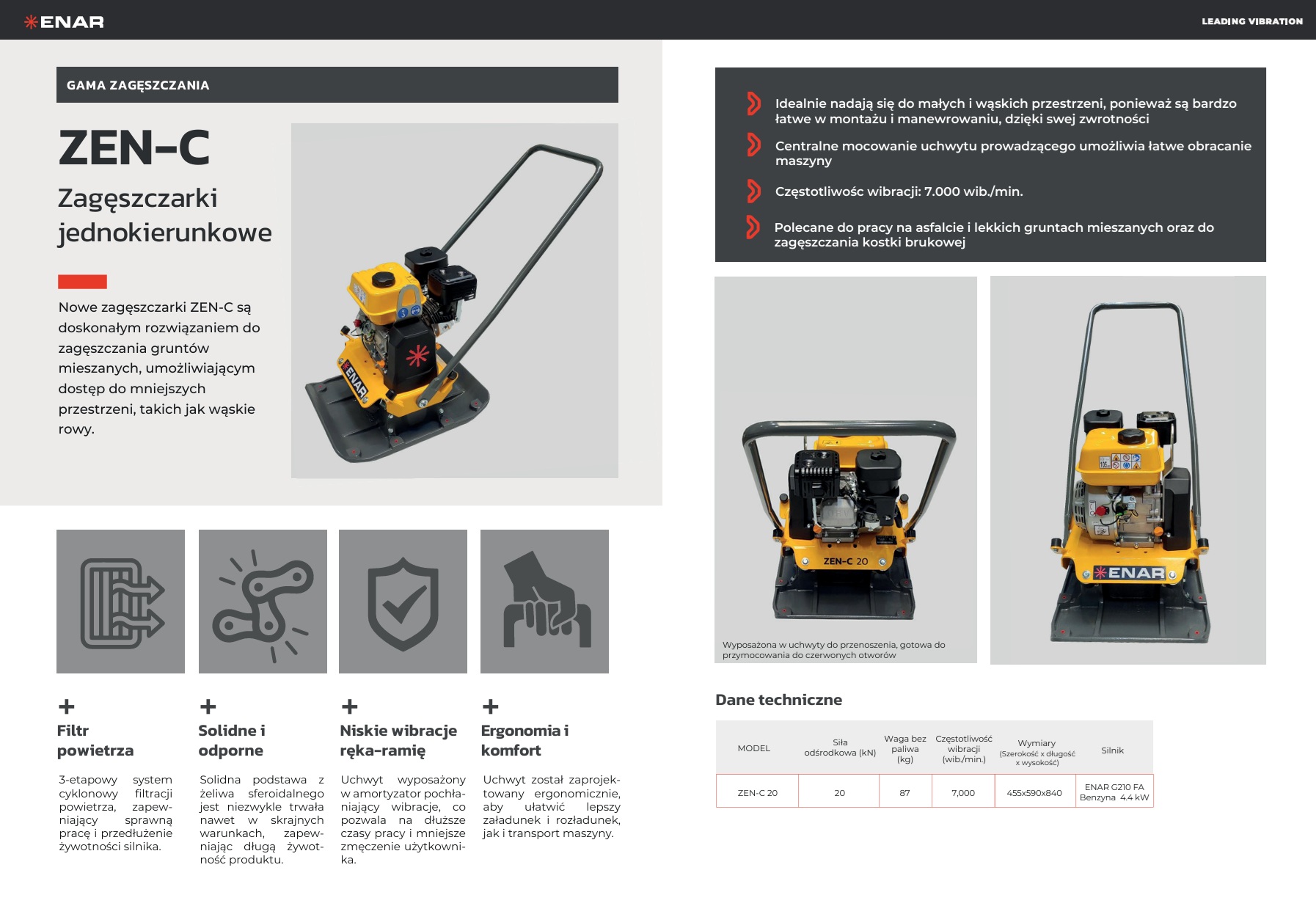 Jednokierunkowe zagęszczarki ZEN-C to doskonała opcją do zagęszczania gruntów w wąskich przestrzeniach, jak wykopy czy chodniki.