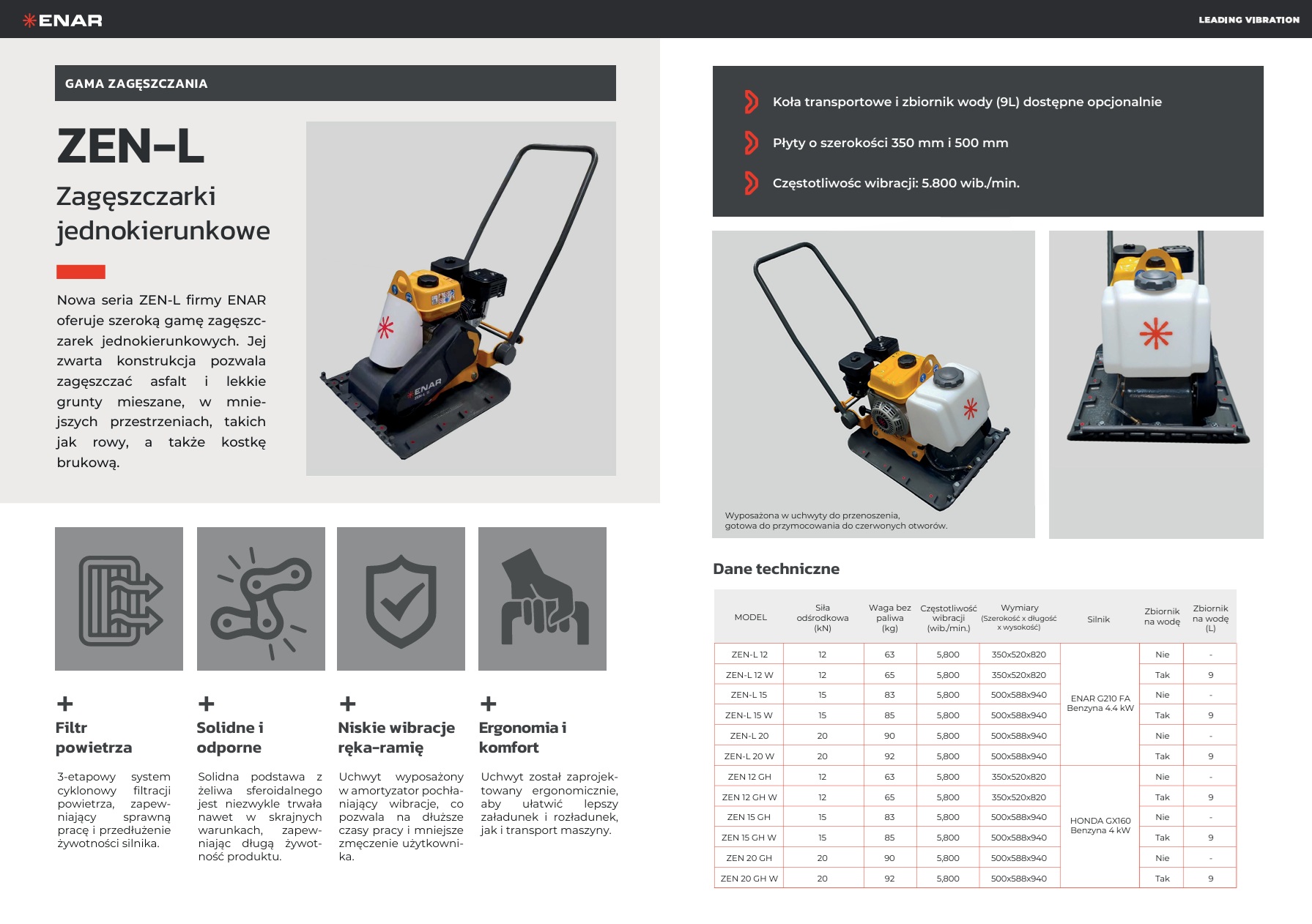 Karta katalogowa zagęszczarek gruntu Enar ZEN-L